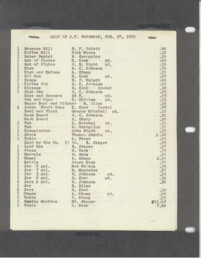 Sale of J.T. Vardeman's Property February 28, 1882 Sale of J.T. Vardeman's Property February 28, 1882 Sale of J.T. Vardeman's Property February 28, 1882