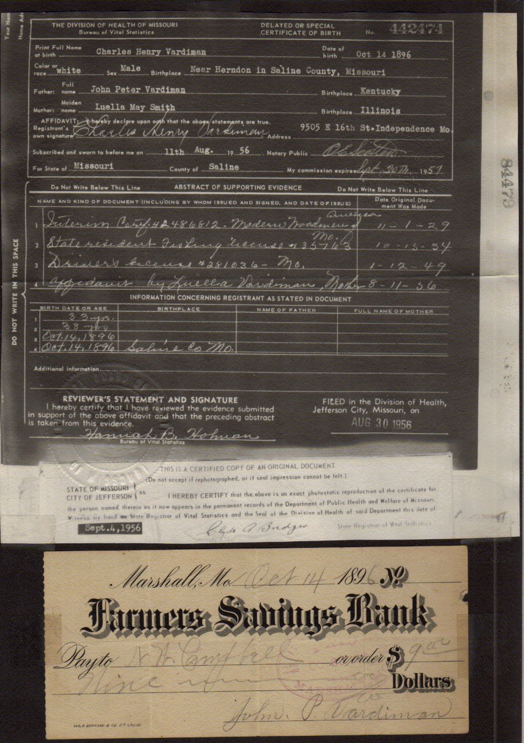 Charles Henry Vardiman Birth Certificate