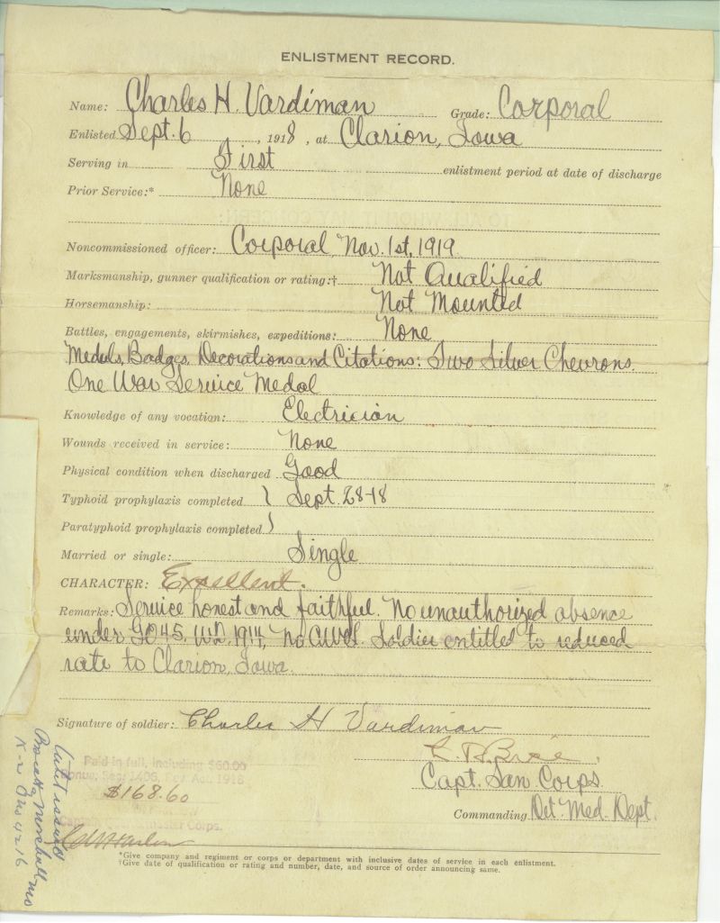 Charles' Enlistment Record, Enlisted 6 September 1918