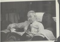 "He might have been reading the evening paper. I remember that he used to buy detective magazines to read. This was taken at our home in Independence."