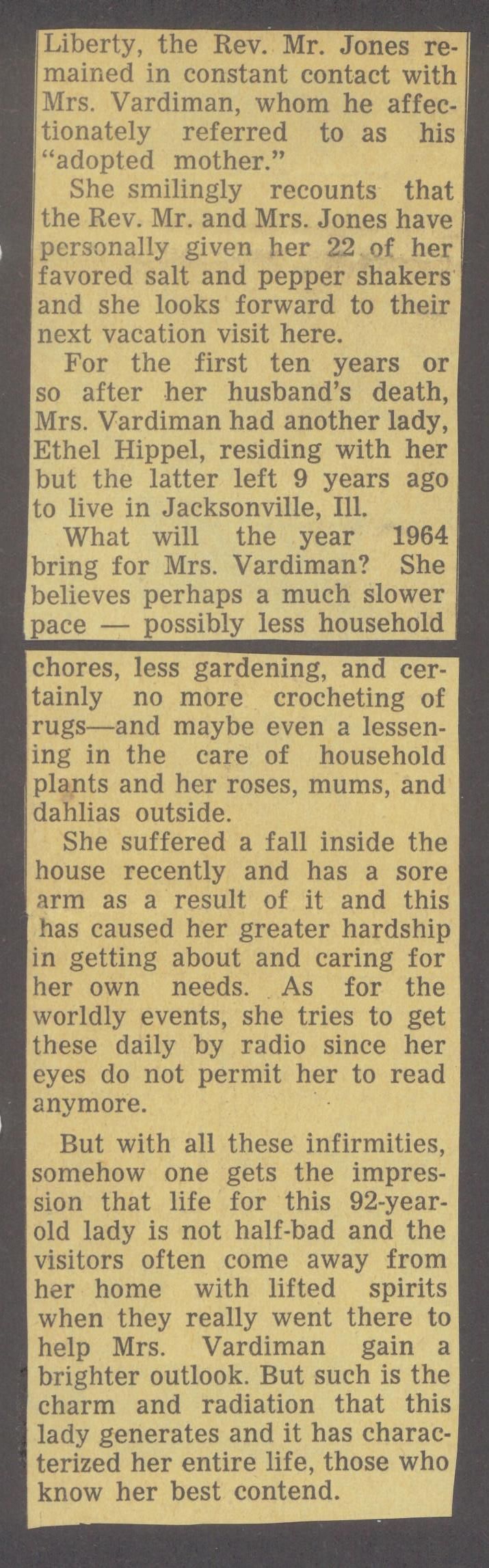There's a copy of a letter written in 1924 to Dear May from J. P. Vardeman.