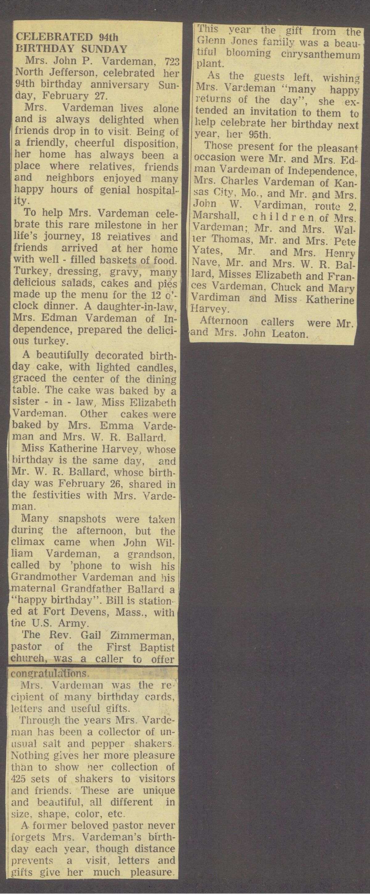 721, in Marshall Mo at the time. John Peter Vardiman and Luella Mae