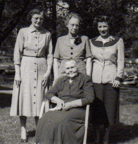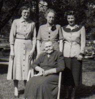 Luella May with her daughters-in-law left to right: Gladys, Emma &