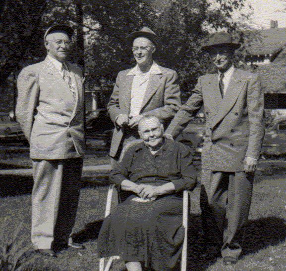 Luella May with her three sons left to right: Charles, Miles "Eddie" &