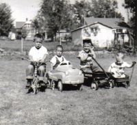 In the evenings all the kids in the neighborhood would get together and play games like softball, kick the can and catch lightening bugs which we would put in jars and we would watch them light up. There was a vacant lot down the street and we played softball there. I have no idea who owned the vacant lot but no one seemed to care that we played there.