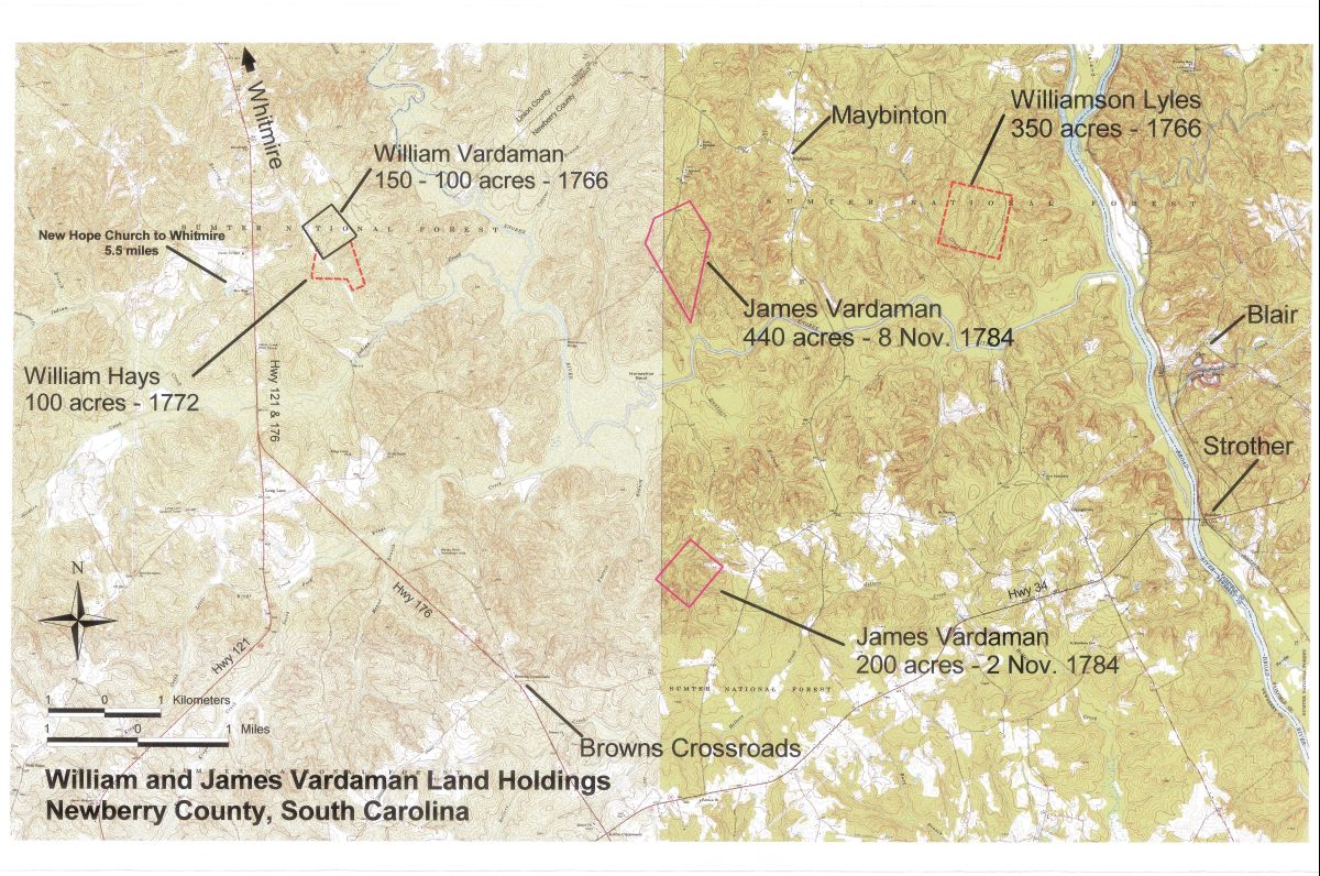 William and James Vardeman Land Holdings in South Carolina 1766 |