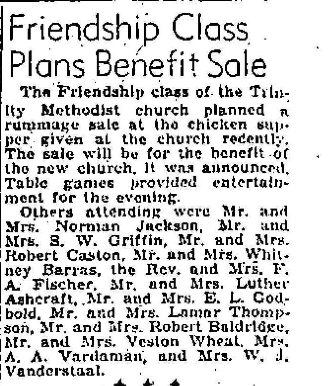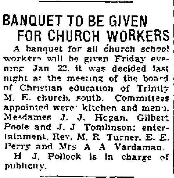 "A. A. Vardaman"outlined activities of the Henry Bible class" at Trinity Methodist