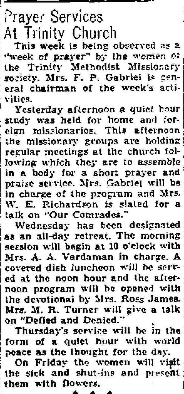 Port Arthur, TX 9 November 1937Week of Prayer observed at Trinity Church.