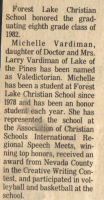 June 1982Michelle Vardiman, Valedictorian, of 8th grade
