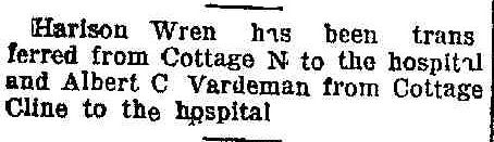 Albert C Vardeman transferred from Cottage Cline to the hospital.