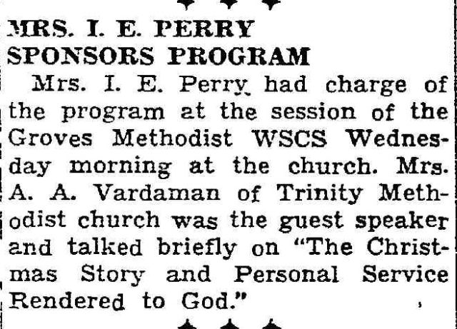 "Mrs. A. A. Vardaman" was the guest speaker at Groves