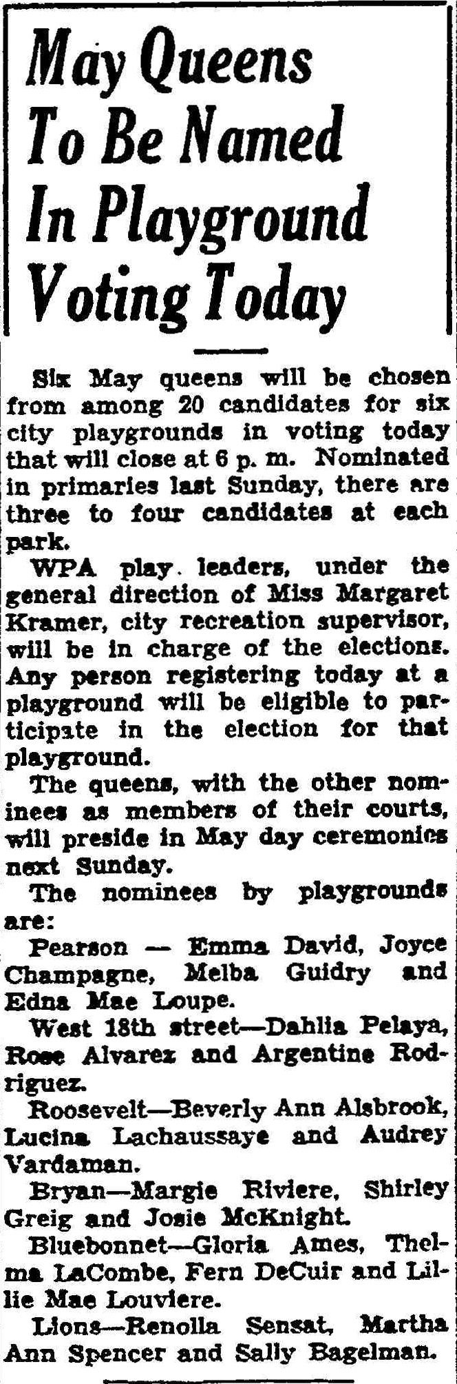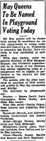 Audrey Vardaman one of 20 candidates for May Queen from Roosevelt park. |