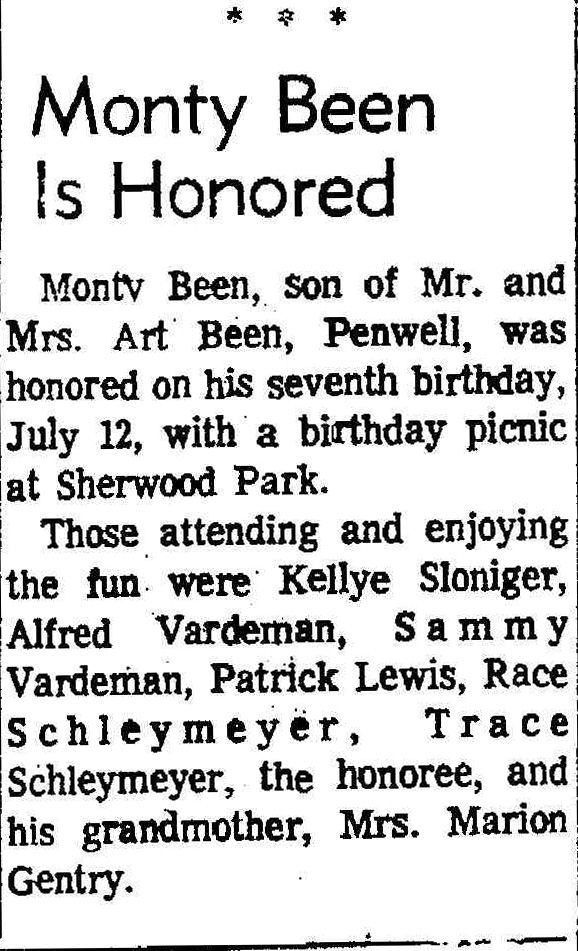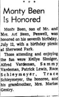 Alfred Vardeman attended a birthday picnic at Sherwood park for 7 year old Monty Been.